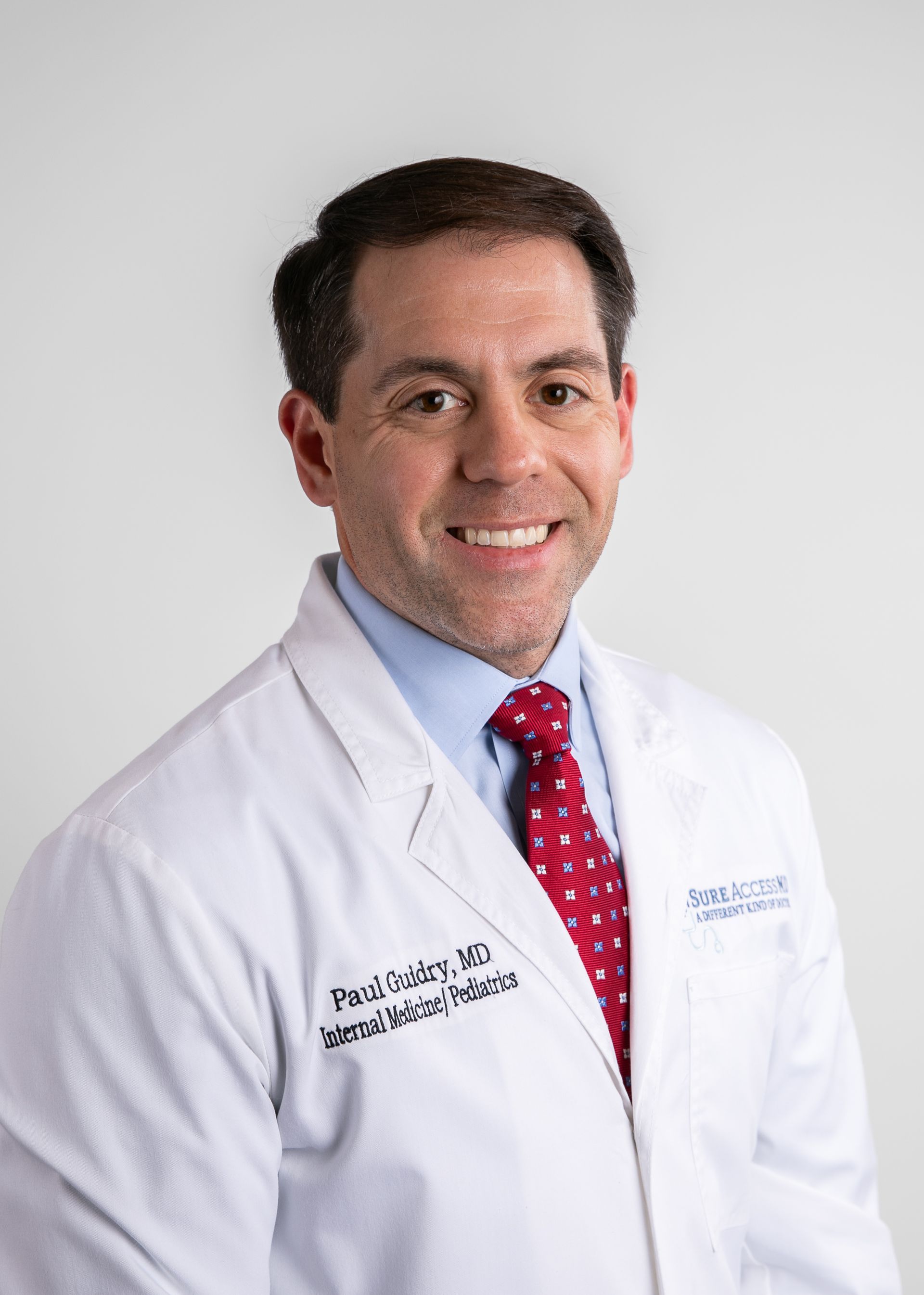 Dr. Paul Guidry was born and raised in Natchitoches, LA. He graduated from Natchitoches Central High School and went on to attend Louisiana State University in Baton Rouge. Dr. Guidry returned to North Louisiana to attend medical school at Louisiana State University Health Sciences Center-Shreveport. Upon completion of medical school, he trained at the University of Tennessee Health Sciences Center in Memphis where he completed a combined residency in Internal Medicine and Pediatrics and served as chief resident in the last year of his four-year residency.
